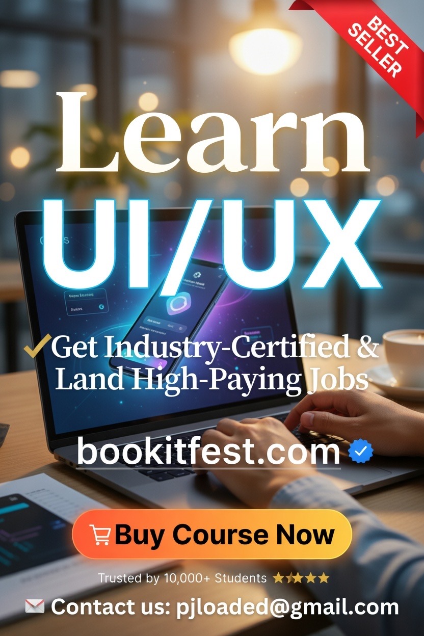 Affordable self-paced UI/UX course in Nigeria: full downloadable resources, portfolio projects, industry certification & job placement guide. Start learning today – enroll at bookitfest.com!