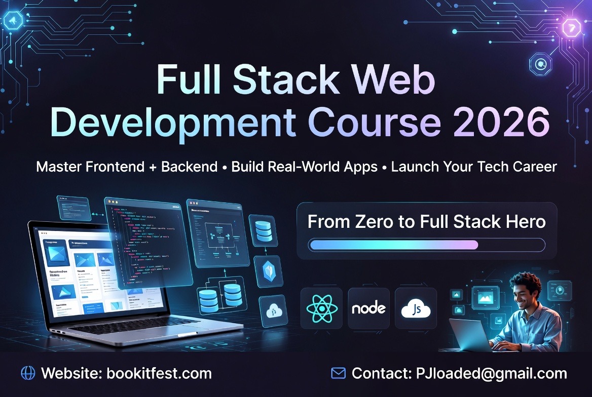 Master Full Stack Web Development in 2026 with our complete course. Learn HTML, CSS, JavaScript, React, Node.js, MongoDB, Next.js, TypeScript, and deploy real-world projects. Join now and become a job-ready full stack developer.